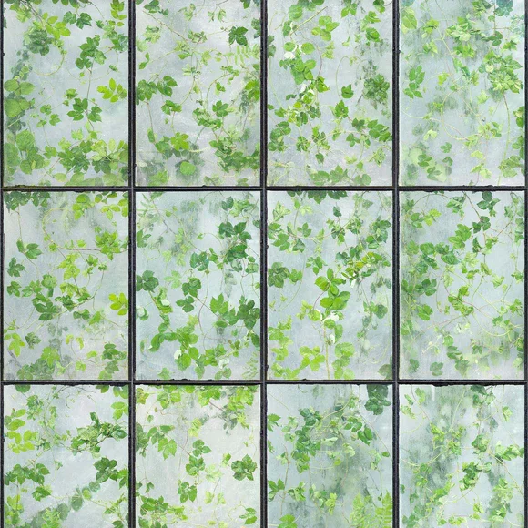 Erik Gutter has been working since 1994 as an independent designer, stylist and decorator. In 2009 ‘Studio Erik Gutter’ opened its doors, a design studio and an interior design shop in Blaricum, The Netherlands. The greenhouse windows on the wallpaper resemble a framework through which you can see the green landscape. This way, you can turn a solid wall into a kind of greenhouse making you look outside.